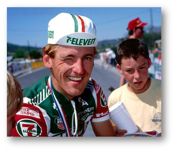 A native of Coquitlam, BC, Alex Stieda raced road bicycles for 15 years of his life, from age 17 to 32 years. He raced for Canada’s national team from 1979 until 1992, the last 7 years as a professional. He competed an average of 100 races a season, over his 15 year career including winning the Yellow Jersey in the 1986 Tour de France (first North American to do so), 3rd in the 1983 Universiade (Edmonton) and 1982 Commonwealth Games (Brisbane), and representing Canada at the Olympics (1984).